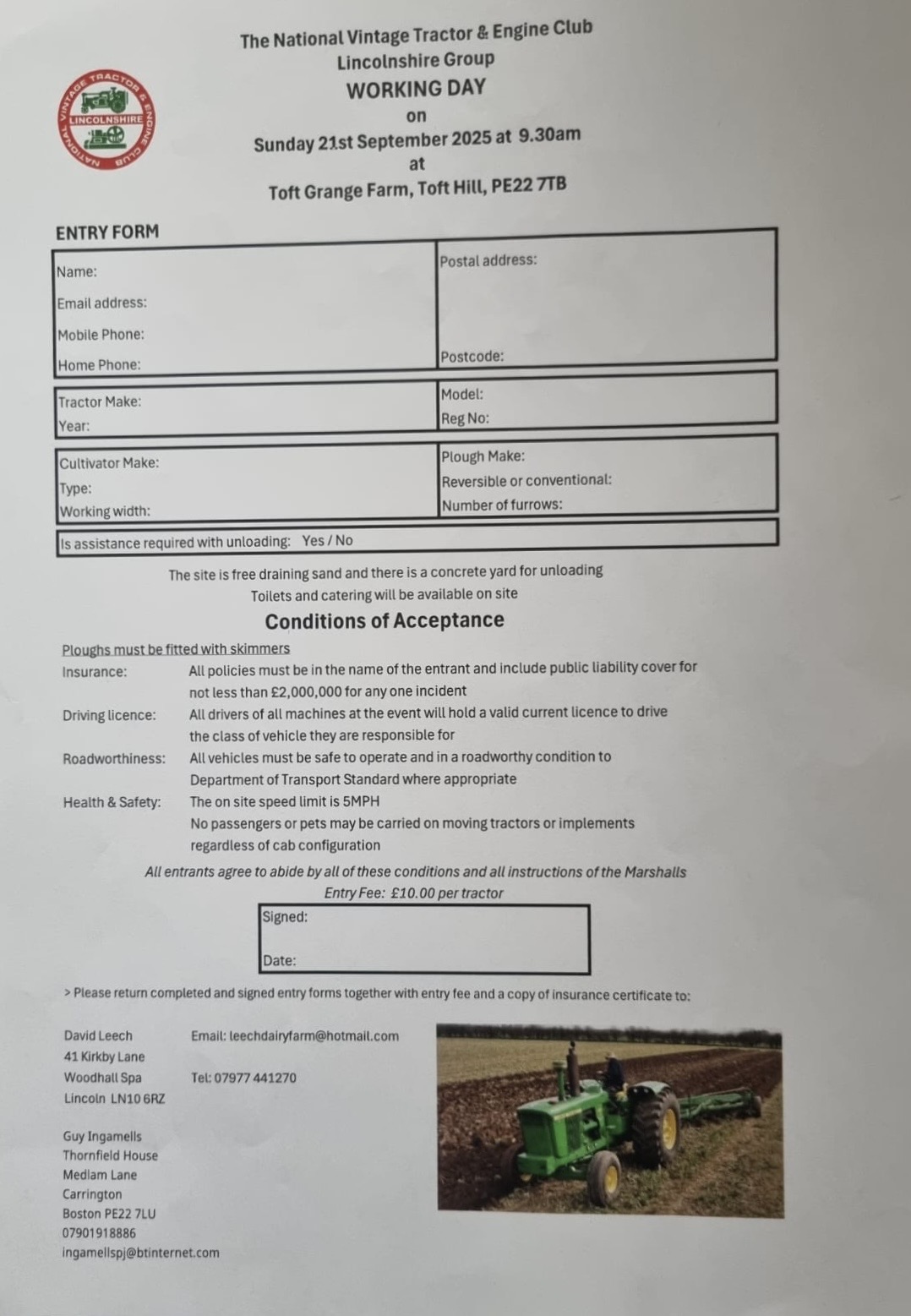 👉 If you are bringing a tractor or machinery, please let Guy or David know as soon as possible. The £10 entry fee applies only to those taking part with machines.